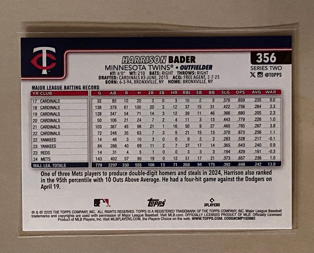 2025 Topps 356 Harrison Bader - Baseball - Series 2
