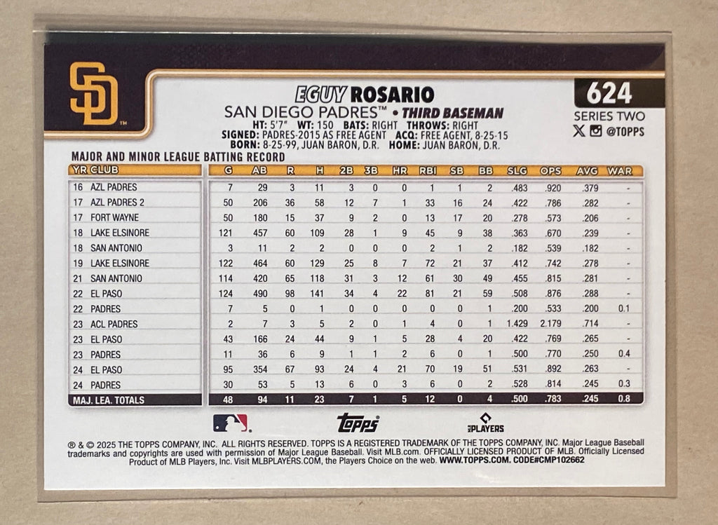 2025 Topps 624 Eguy Rosario - Baseball - Series 2