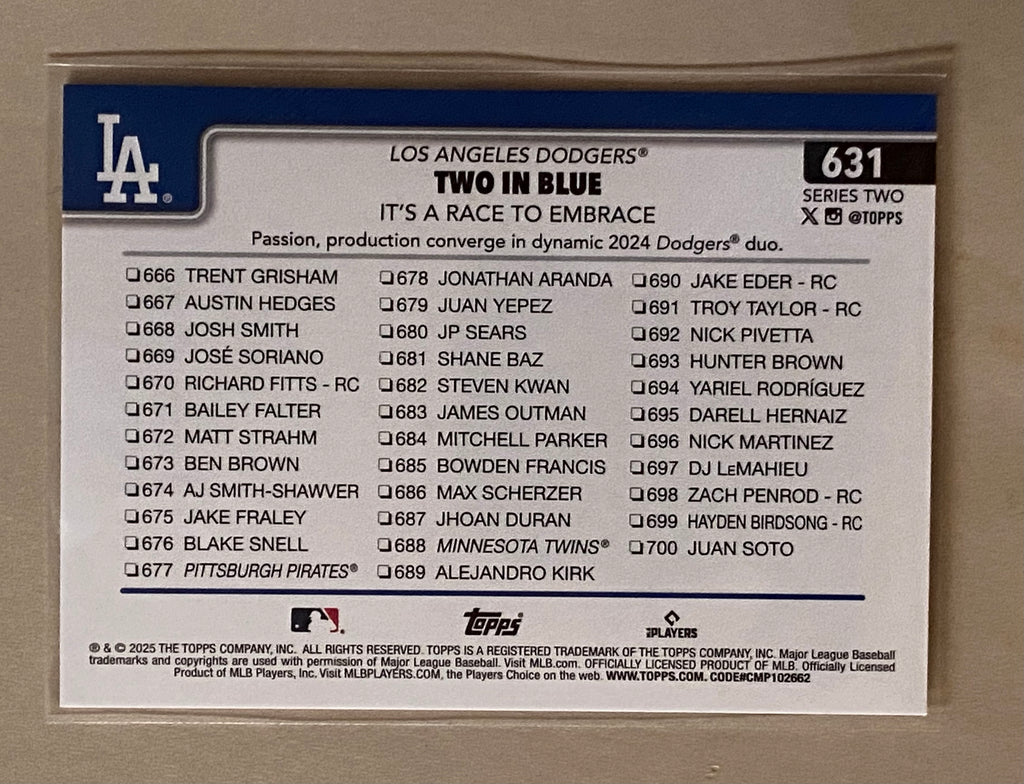 2025 Topps 631 Two in Blue - Baseball - Series 2
