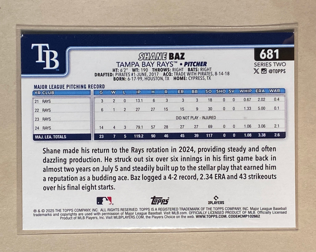 2025 Topps 681 Shane Baz - Baseball - Series 2