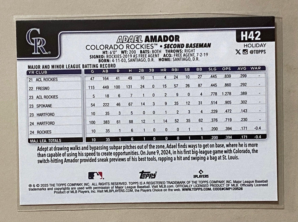 2025 Topps H42 Adael Amador - Baseball - Holiday - RC