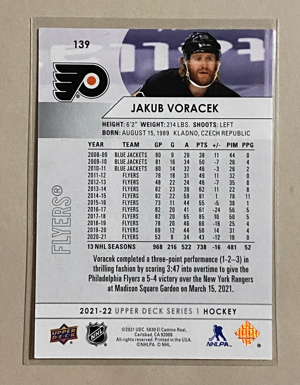 2021-22 Upper Deck 139 Jakub Voracek - Hockey - Series 1