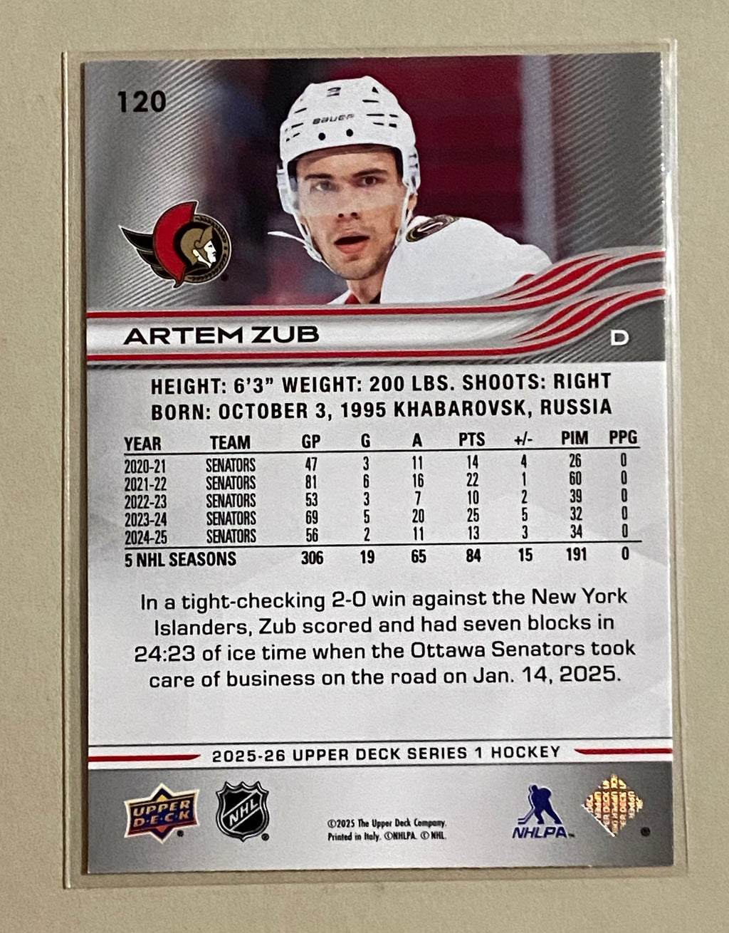 2025-26 Upper Deck 120 Artem Zub - Hockey - Series 1