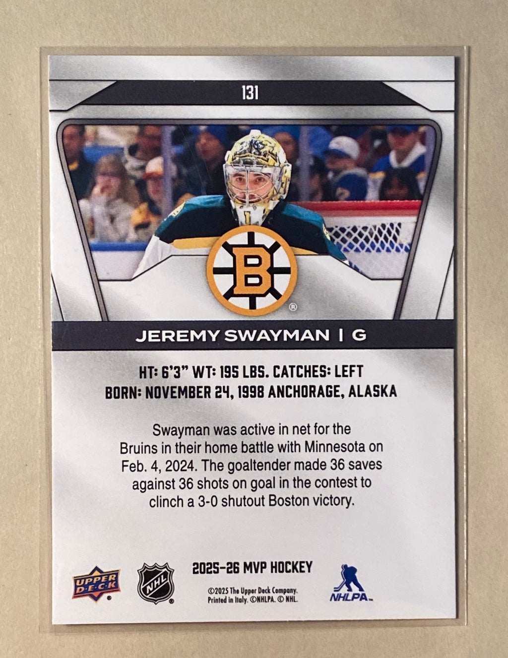 2025-26 Upper Deck 131 Jeremy Swayman - Hockey - MVP