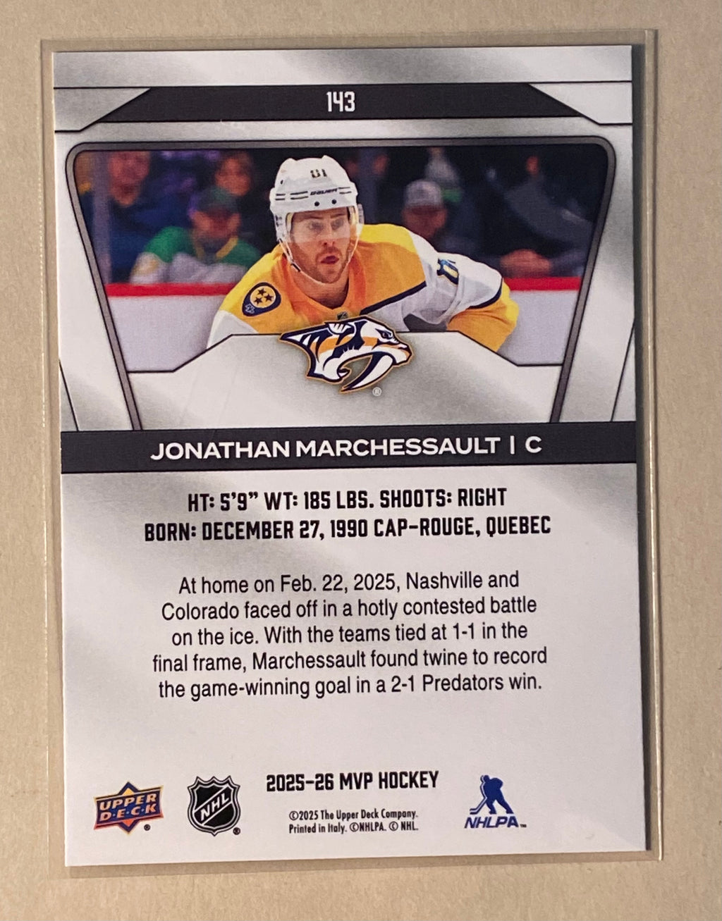 2025-26 Upper Deck 143 Jonathan Marchessault - Hockey - MVP