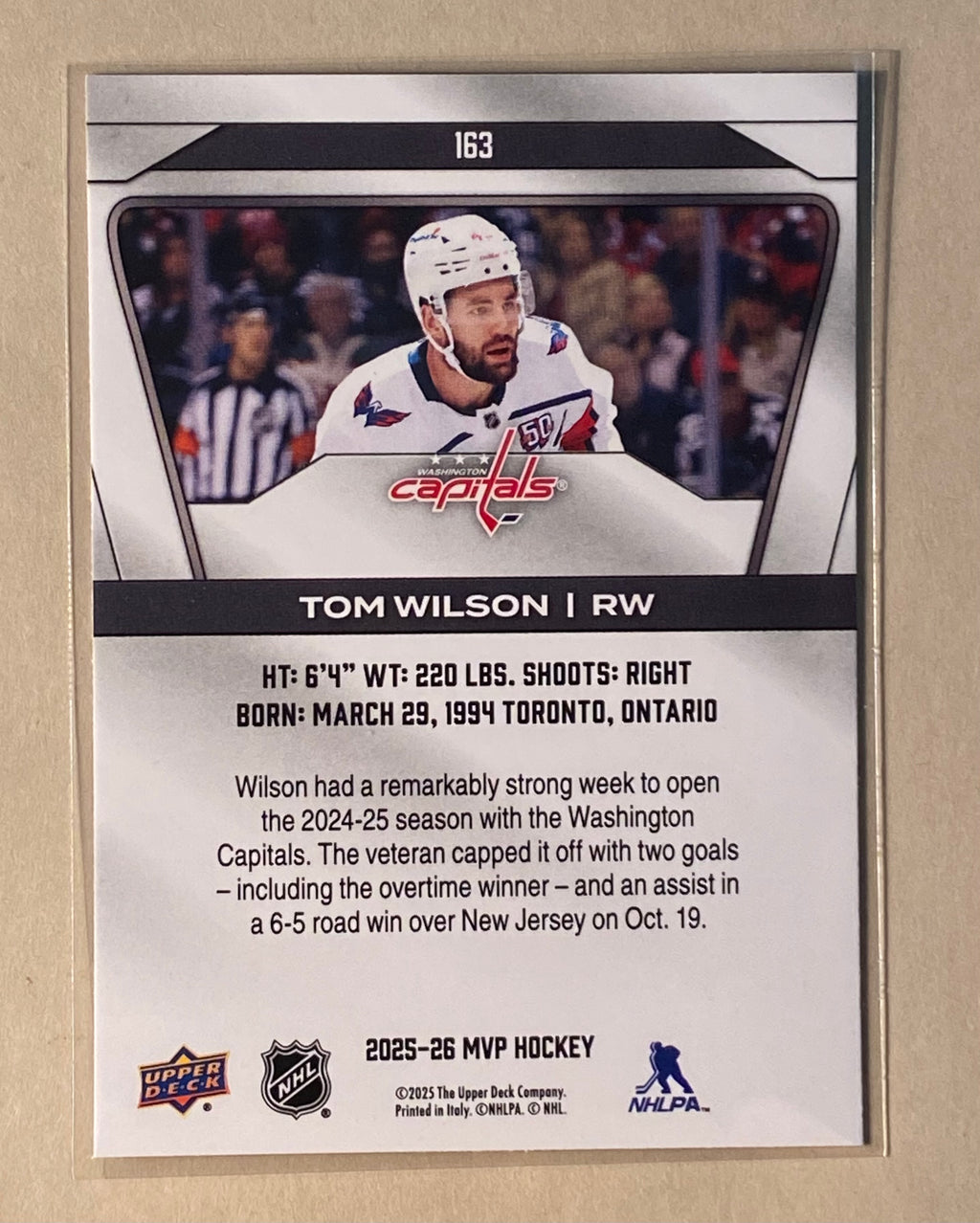 2025-26 Upper Deck 163 Tom Wilson - Hockey - MVP