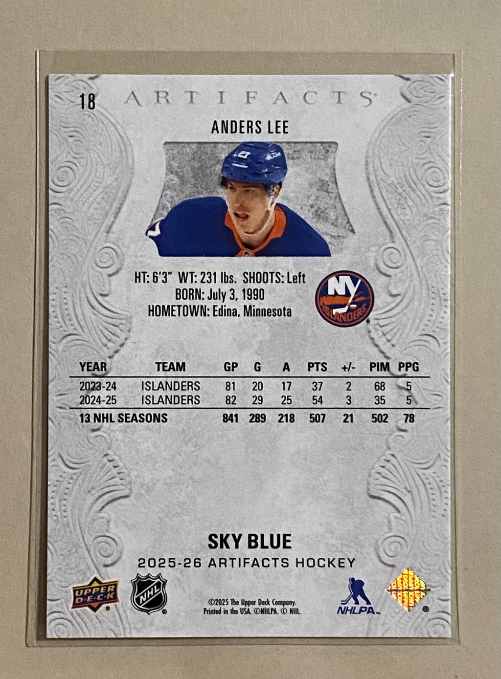 2025-26 Upper Deck 18 Anders Lee - Hockey - Artifacts - Blue Sky