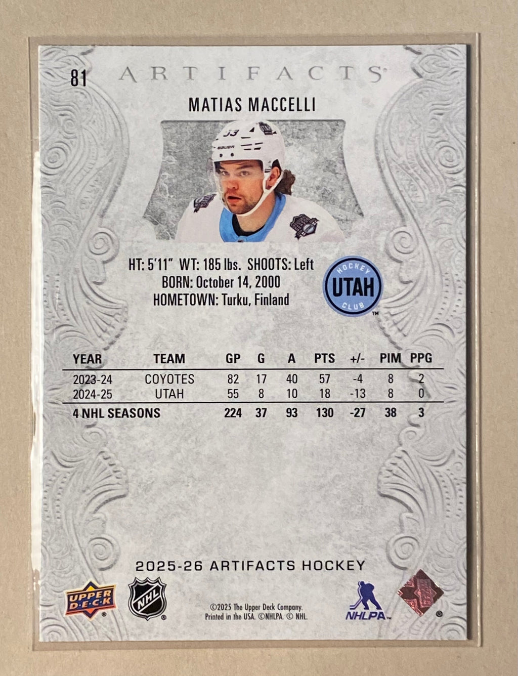 2025-26 Upper Deck 81 Matias Maccelli - Hockey - Artifacts