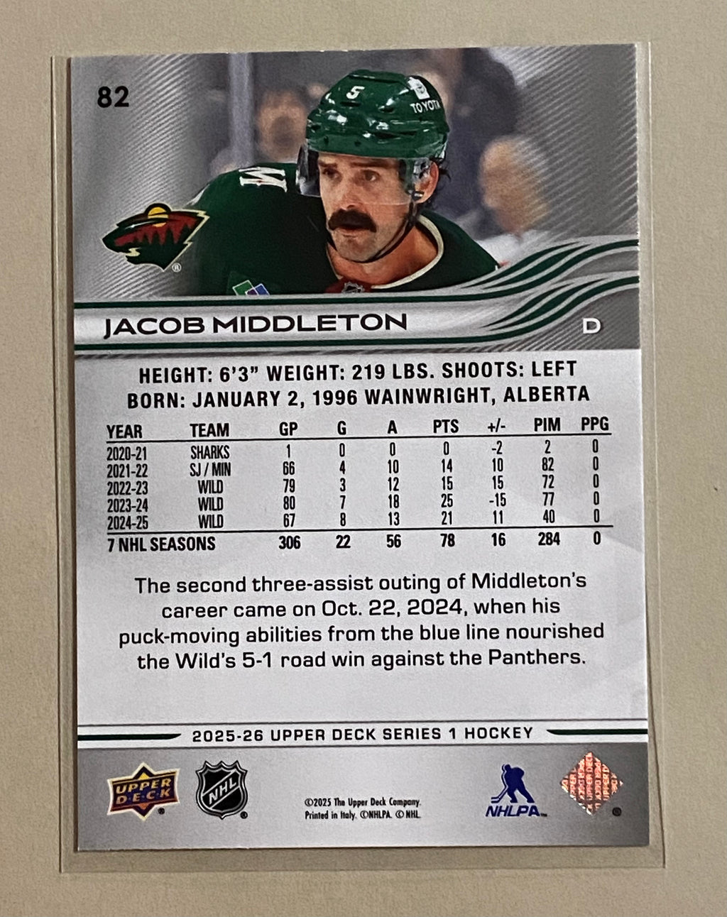 2025-26 Upper Deck 82 Jacob Middleton - Hockey - Series 1