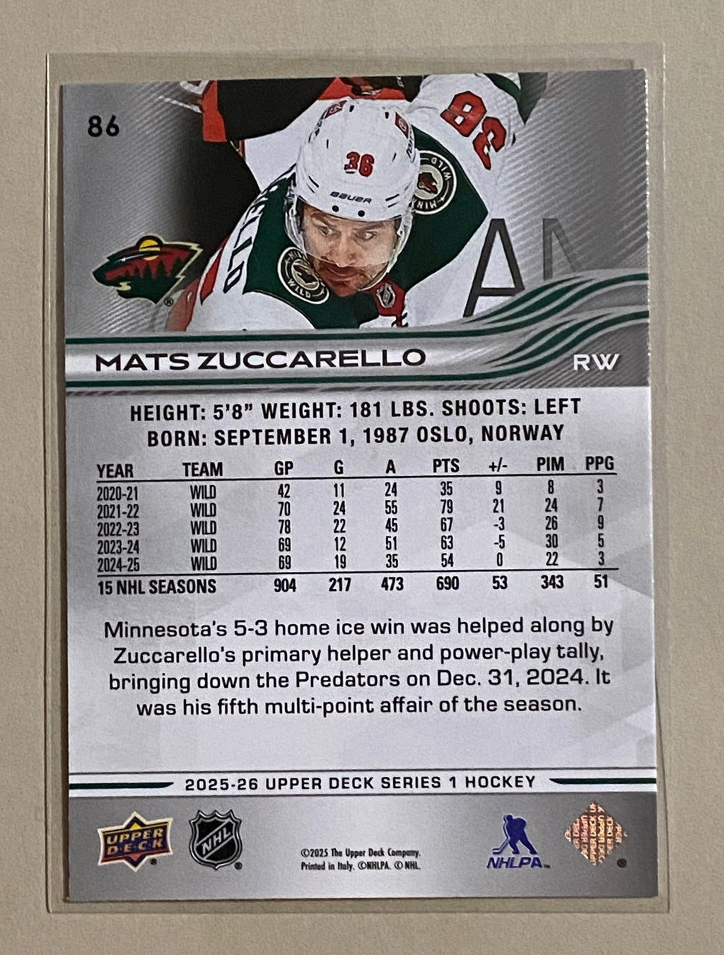 2025-26 Upper Deck 86 Mats Zuccarello - Hockey - Series 1