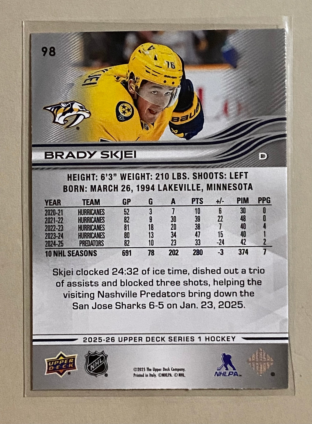 2025-26 Upper Deck 98 Brady Skjei - Hockey - Series 1