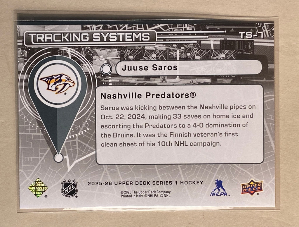 2025-26 Upper Deck TS-7 Jusse Saros - Hockey - Tracking Systems - Series 1
