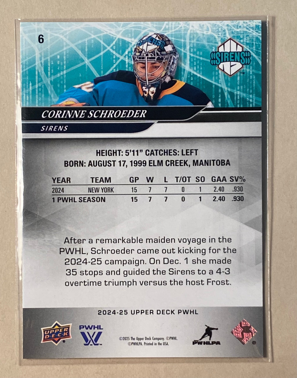 2024-25 Upper Deck 6 Corrine Schroeder - PWHL