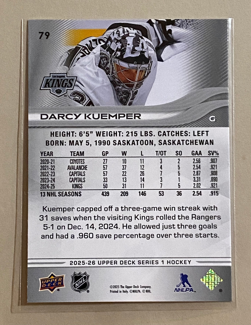 2025-26 Upper Deck 79 Darcy Kuemper - Hockey - Series 1